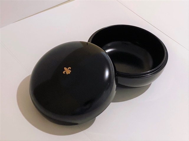 「ボンボニエール」とはフランス語で砂糖菓子を入れる小箱のこと。ヨーロッパでは子供のお誕生日祝い、結婚式など幸福を彩るものとして砂糖菓子とともに配られる習慣があります。小物入れとしても幅広い用途でお使いいただける漆製のボンボニエールに、上品な金のユリマークを施しました。
